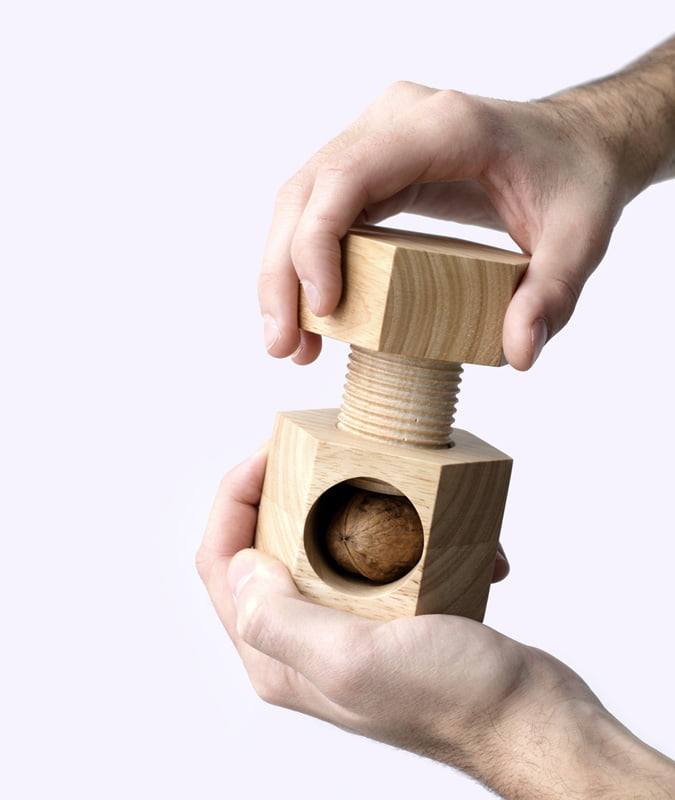 Nutcracker is a minimalist design created by England-based designer Industrial Facility. The nutcracker is designed for Muji’s Xmas program, launched alongside Board Magnets. The design features a small hole within a corkscrew – the user can adjust the height of the screw by turning the handle.